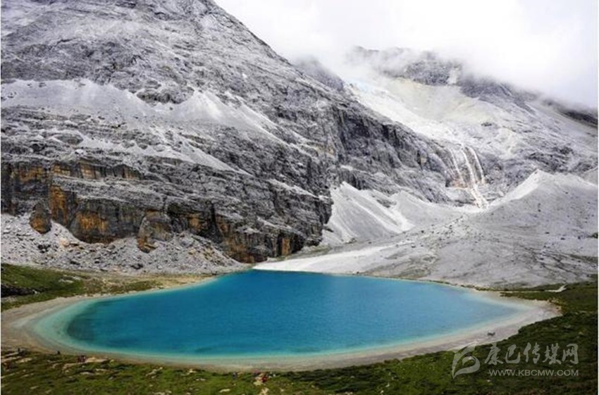 牛奶海位于央邁勇神山腳下的山坳里,是一個面積不大狀如水滴的古冰川湖。